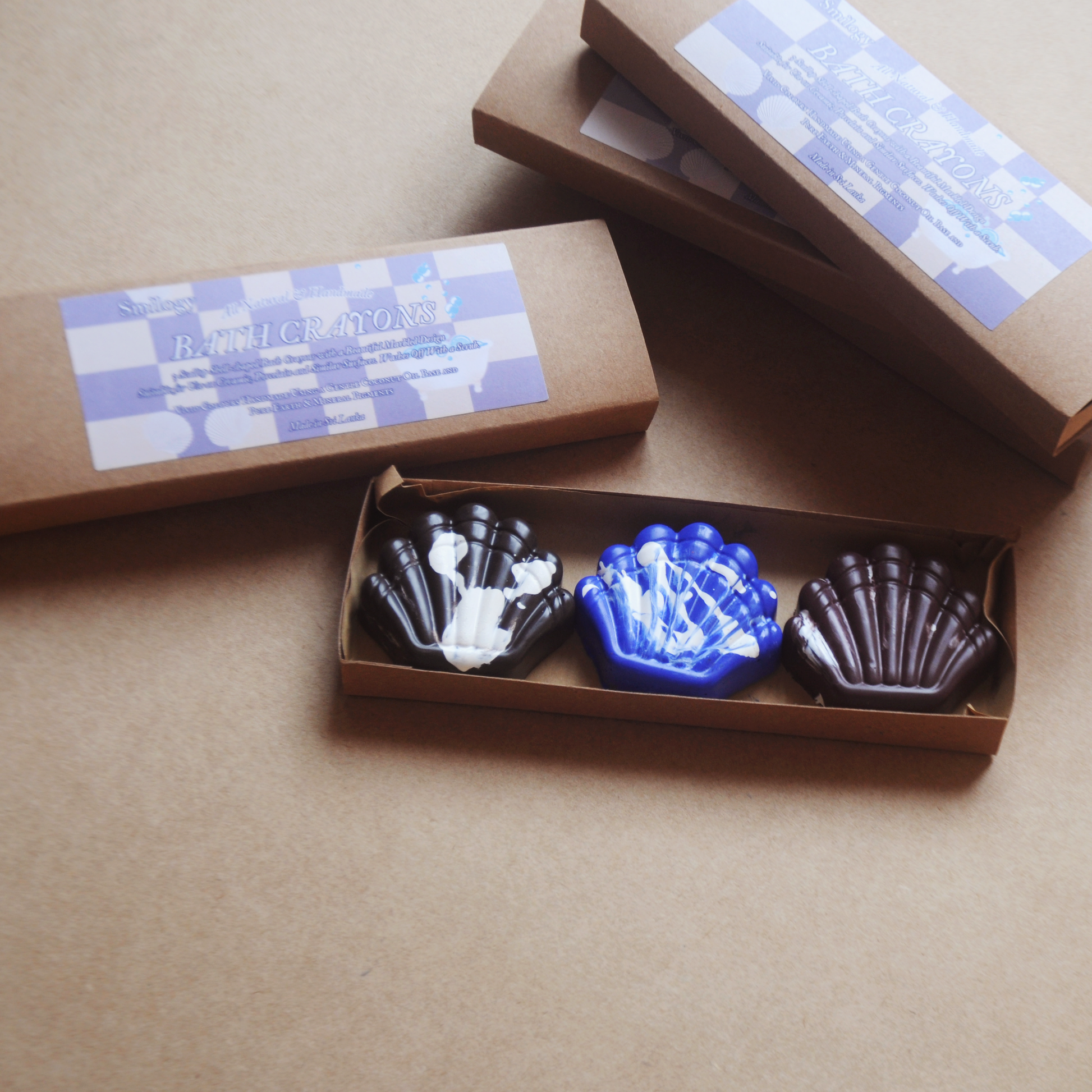 All Natural Coconut Oil Bath Crayons | Set of 3 Jumbo Shell-shaped Toddler Soap Crayons